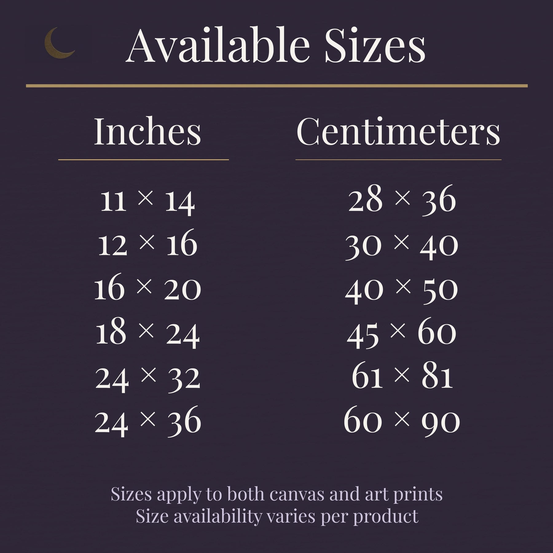 • Sizes: 12x16″ (30x40 cm), 16x20″ (40x50 cm), 18x24″ (45x60 cm), 24x36″ (60x90 cm)