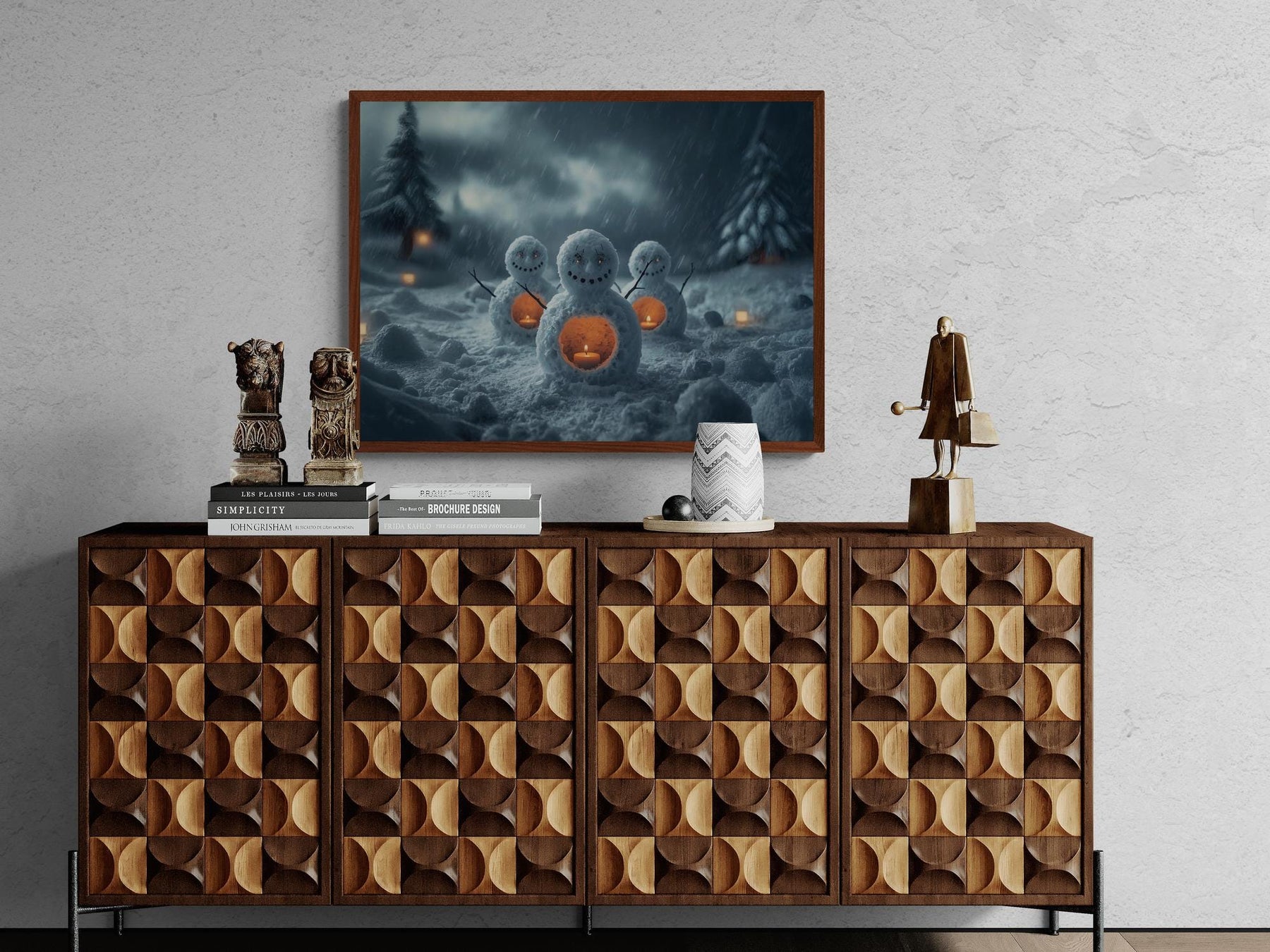 Bring home the warmth of a winter’s dream. Choose art print or canvas, and let these glowing snowmen fill your space with wonder this Christmas season.