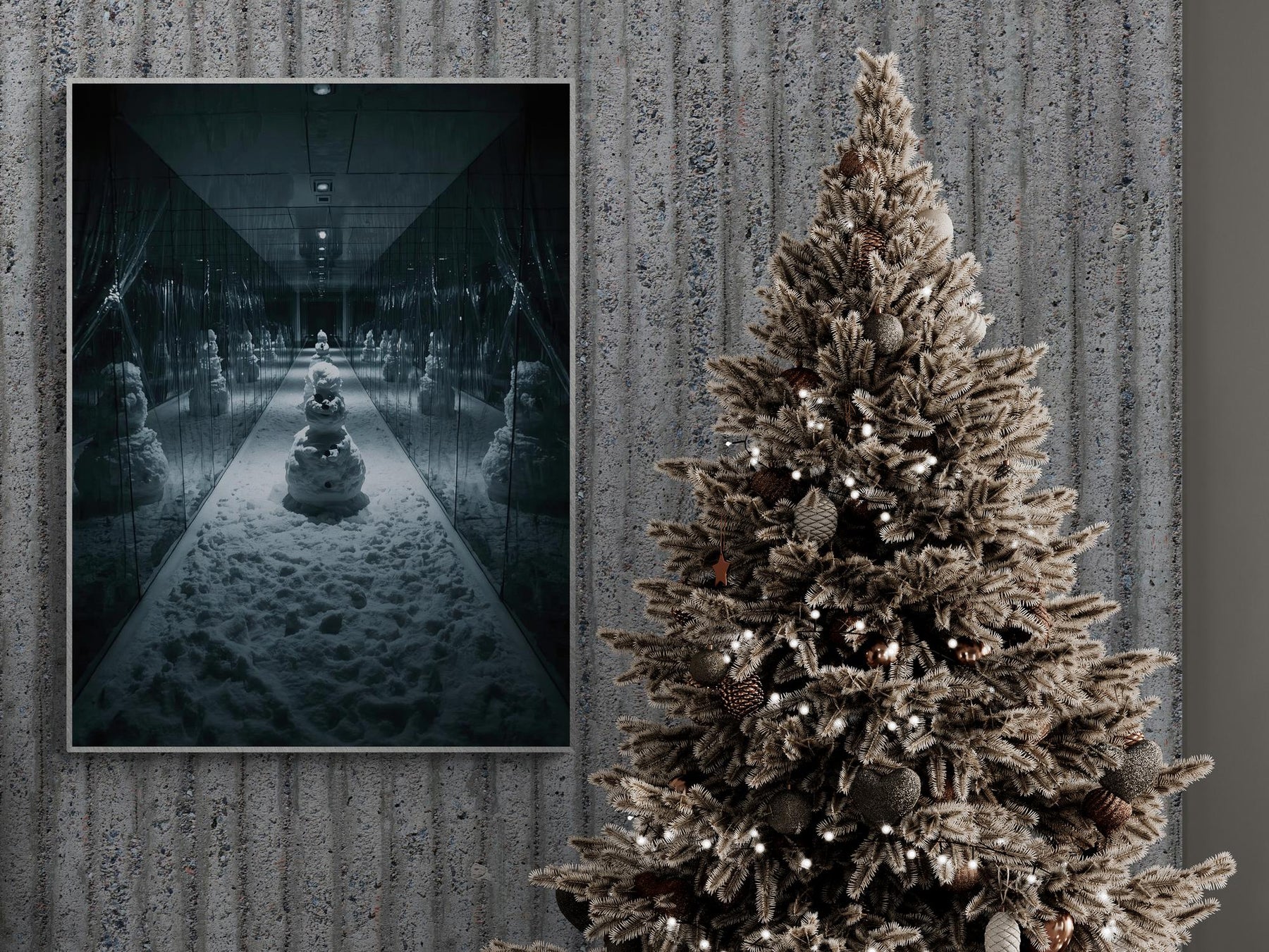 Bring eerie holiday magic into your home—order this snowman corridor print and make your Christmas décor unforgettable.