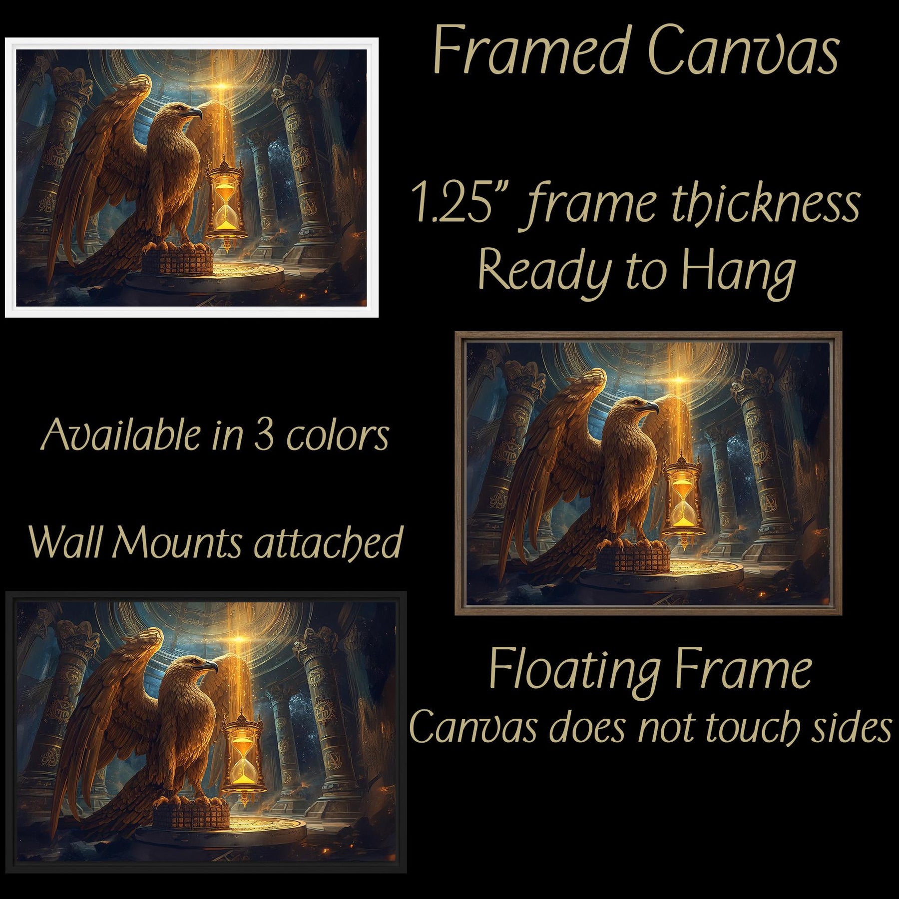 This mythic eagle wall art portrays a powerful time guardian watching over destiny within an ancient celestial temple. Designed for fantasy art collectors, this piece blends symbolism, myth, and dramatic light into a striking statement artwork.