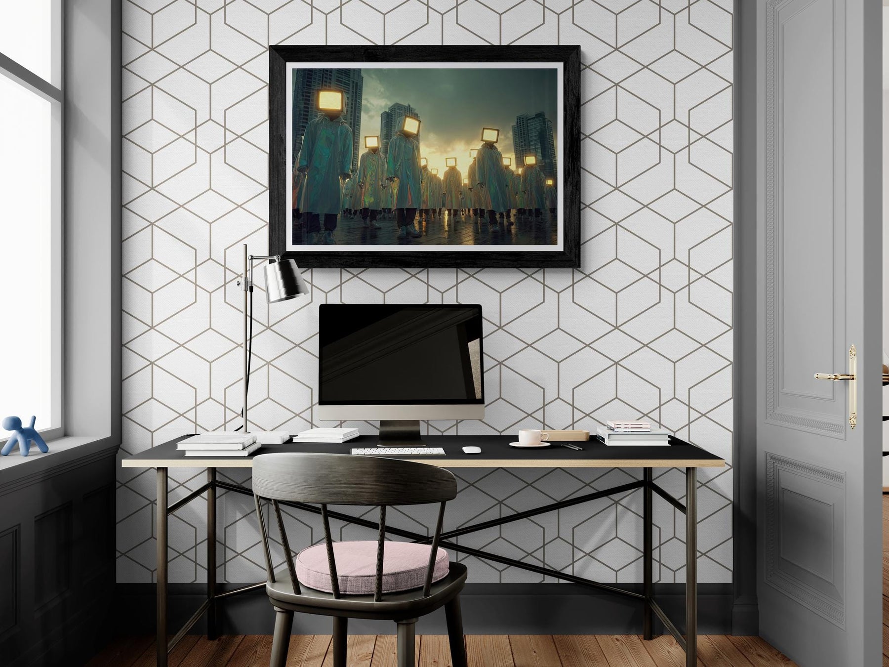 Turn your space into a cinematic sci-fi moment. Add this retro futurism wall art to your collection and elevate your room with bold, surreal energy.